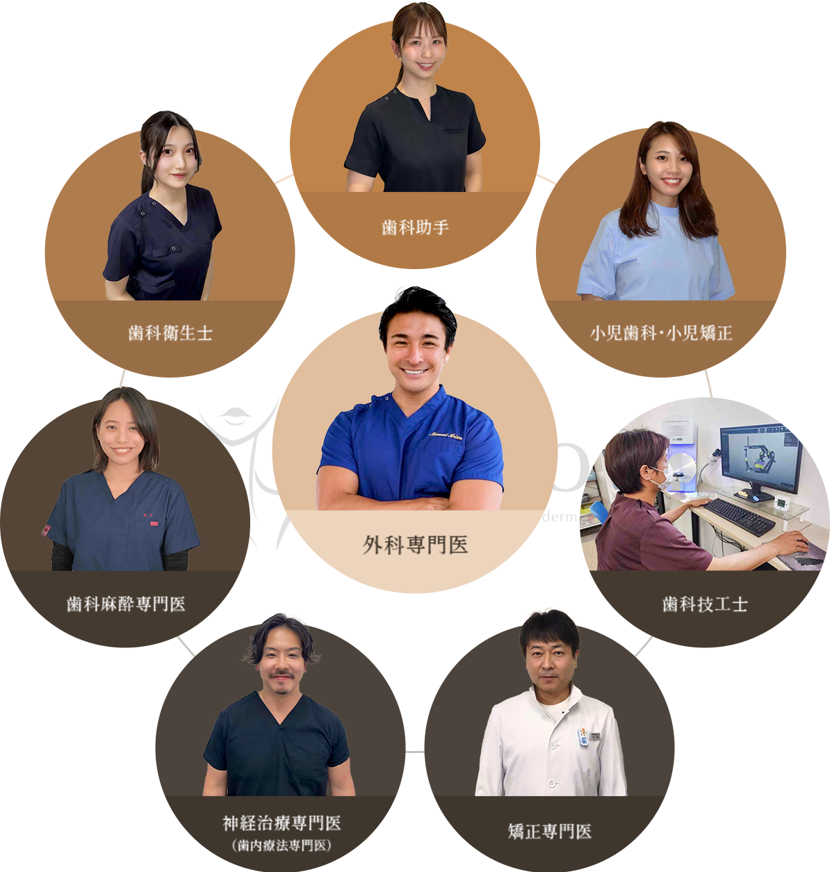 歯科医療には、保存、補綴、矯正、外科、審美などさまざまな専門領域があり、各分野に精通したプロフェッショナルが存在します。